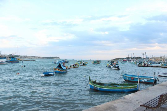 图为马耳他(Malta)的马尔萨什洛克(Marsaxlokk)渔村当地的传统渔船