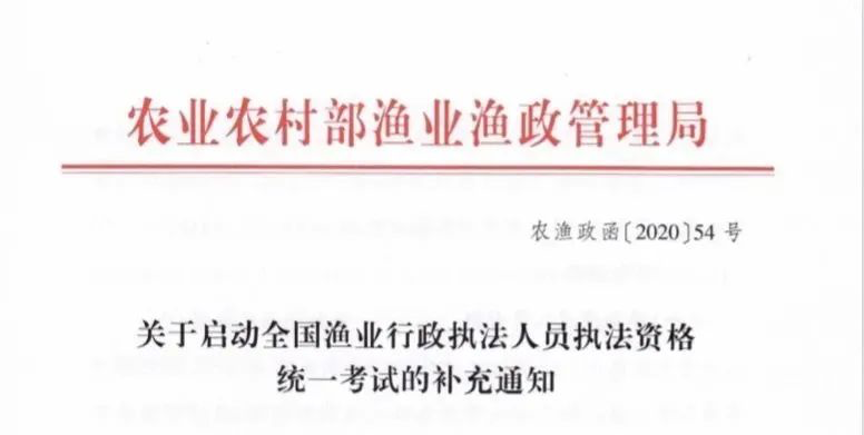 为贯彻落实中央关于严格实行行政执法人员持证上岗和资格管理要求,提升渔政队伍严格规范公正文明执法能力和水平,农业农村部印发了《关于做好2019年渔业行政执法人员执法资格统一考试工作的通知》(农办渔〔2019〕30号)和《2019年渔业行政执法人员执法资格统一考试方案》(农渔政函〔2019〕122号),对全国渔业行政执法人员执法资格统一考试(简称“考试”)作出安排。根据当前新冠肺炎疫情防控形势和地方机构改革后渔政执法的需要,农业农村部渔业渔政管理局印发《关于启动全国渔业行政执法人员执法资格统一考试的补充通知》(以下简称《通知》),定于近期启动全国渔业行政执法人员执法资格统一考试工作(2019年度、2020年度考试同步进行)。